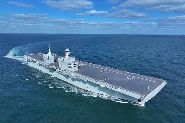 中国人民解放军海军「四川舰」完成首次海试。11月16日,中国海军首艘076型两栖攻击舰「四川舰」完成为期3天的首次航行试验任务,所有测试均达到预期效果。「四川舰」是全球首款采用电磁弹射技术的两栖攻击舰,满载排水量超过4万吨,采用双舰岛设计,飞行甲板长263米,宽45米,可搭载无人机、固定翼飞机、直升机和两栖装备等,具备「准航母」级别作战能力,预计2026年底前正式服役。摄影师:Zhang Liang